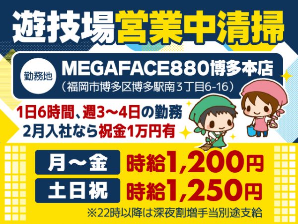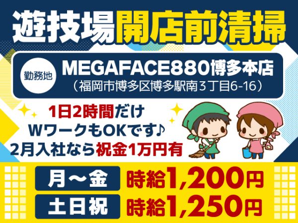 福岡市博多区/開店前清掃パート/1日2時間/未経験歓迎/残業なし/株式会社 岩田/2026.02.06公開