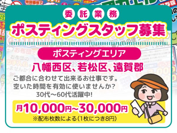 八幡西区、若松区、遠賀郡/ポスティングスタッフ/20代〜60代活躍中/委託/おふとんの北九/2026.04.09公開
