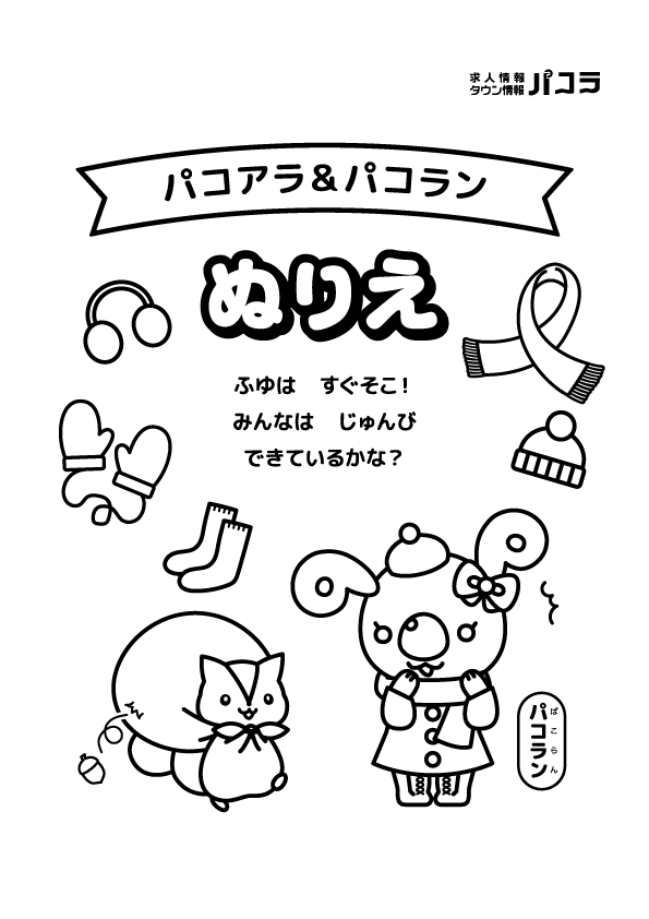 パコアラ&パコランの冬の新作ぬりえが登場しました。今回のテーマは、やさしさとぬくもりを感じる冬支度のシーズンです。