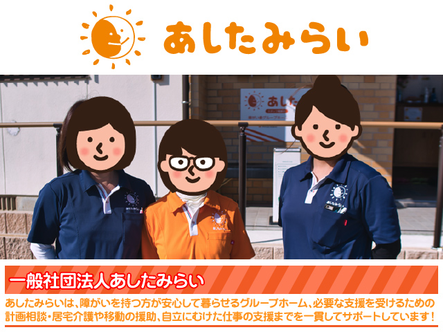 あしたみらいは、障がいを持つ方が安心して暮らせるグループホーム、必要な支援を受けるための