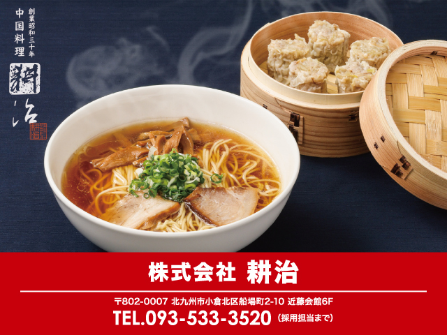 北九州市小倉北区に本社を置く株式会社耕治は、昭和30年の創業以来、地域に愛され続ける老舗中国料理店です。