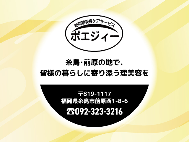 福岡県糸島市、前原西に店舗拠点を構える「訪問理美容ポエジィー」です。