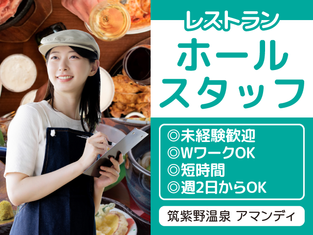 筑紫野温泉 アマンディ内 レストランホールスタッフ(パート)募集!