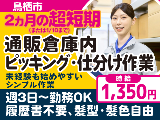 未経験でも時給1,350円!! 通販倉庫内ピッキング・仕分け作業