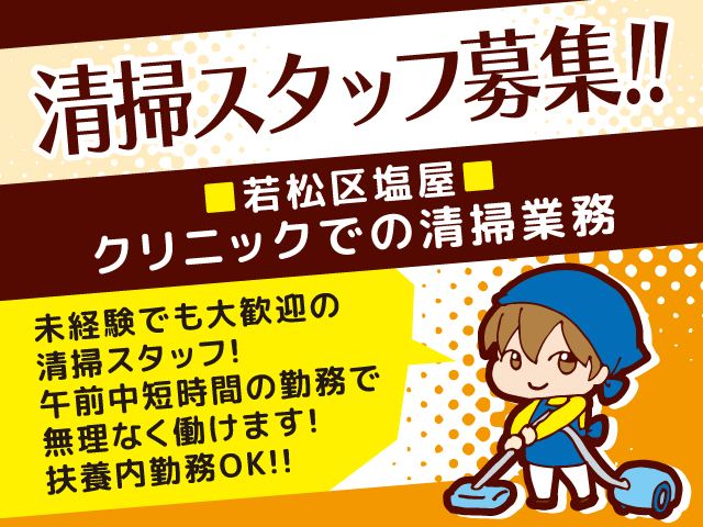 若松区塩屋のクリニックでの清掃スタッフ【パート】の募集内容
