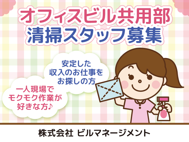 オフィスビル内の共用部分をきれいにする、シンプルでやりがいのあるお仕事です。