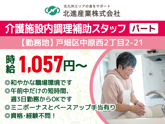 地域に根差した老人ホームで、「食」を通じて笑顔を支える調理補助のお仕事です。