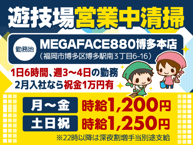 遊技場営業中清掃スタッフ募集の募集内容