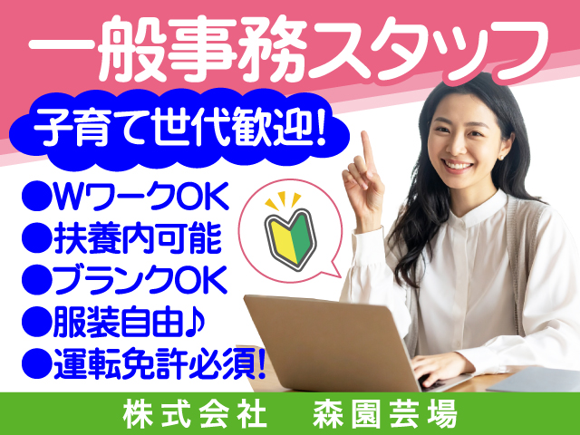 福岡市西区にある「株式会社森園芸場」での一般事務のお仕事です。電話・来客対応や、書類作成など、基本的な事務業務をお願いします。