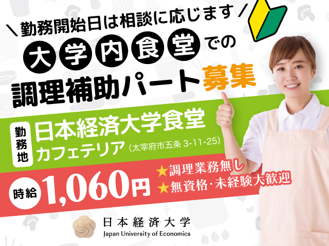• 太宰府市五条/調理補助スタッフ募集/パート・アルバイト/未経験者歓迎/日本経済大学食堂 カフェテリア