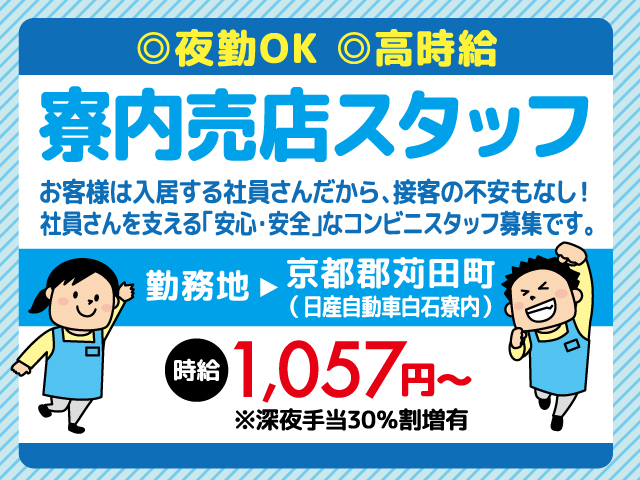 日産グループの安定した環境で、顔なじみの社員さんを支える「安心・安全」なコンビニスタッフ募集です。