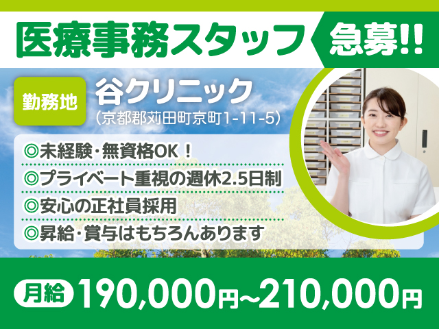 あなたの優しい笑顔と丁寧な対応で、谷クリニックを支えてください!