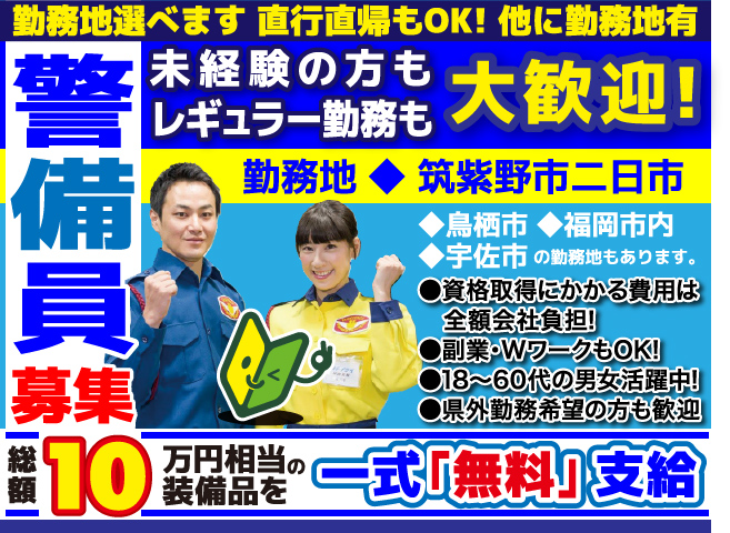 #警備員 #交通誘導 #パート #アルバイト #日払い #週払い #筑紫野市 #主婦活躍中 #中高年 #シニア