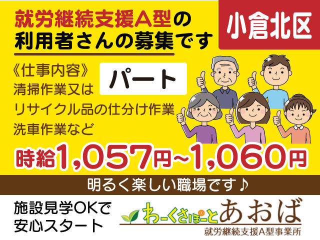 【時給1,057円〜/施設見学OK】小倉北区のA型事業所