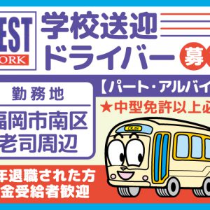 福岡市南区老司周辺/学校送迎ドライバー募集/パート・アルバイト/年金受給者・定年退職された方歓迎/ゆとりある勤務体系/株式会社ベストワーク