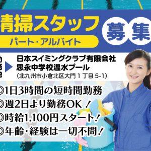 小倉北区/清掃スタッフ/パート・アルバイト/未経験者歓迎/週2日〜/西日本スイミングクラブ有限会社
