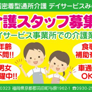京都郡苅田/介護スタッフ/正職員/食事補助有!!/男女活躍中!!/年齢不問!!/地域密着型通所介護/デイサービスみのり/2026.01.22公開